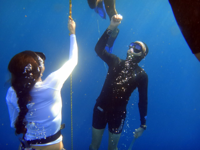 No matter how experienced a diver is, Rogers says, beginners are always nervous before their first free dive. It’s just that different from scuba. Anyone who claims otherwise is either not being completely honest or hasn’t been listening as closely as they should have been.