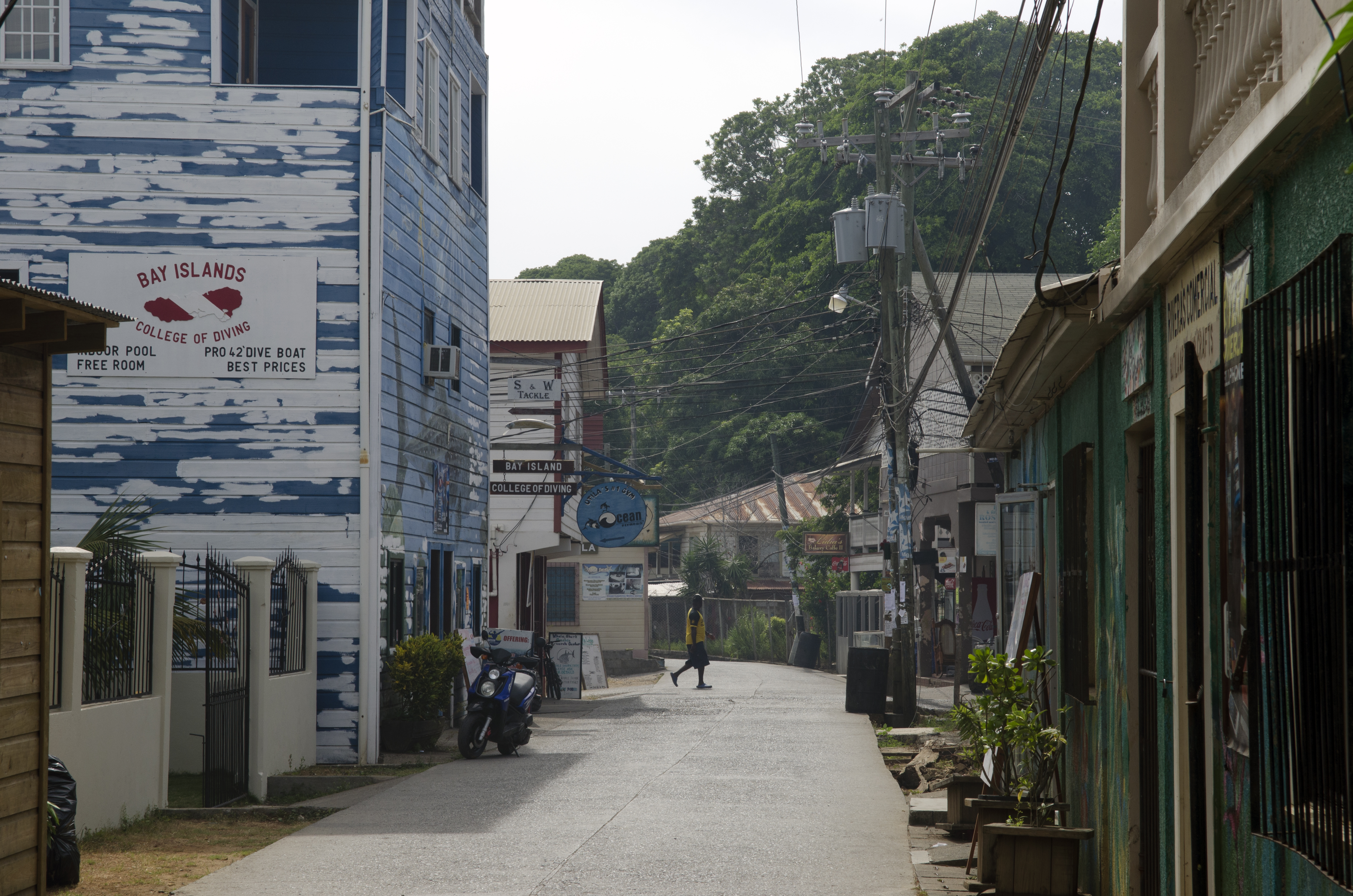 Utila is a tiny place. The island consists of a few streets, a couple of small beaches and enough dive shops, bars and restaurants to keep the tourists busy. There is one ferry in and one out every morning and afternoon from the mainland. The people who live and work on the island are laid back and often hilariously off-kilter.