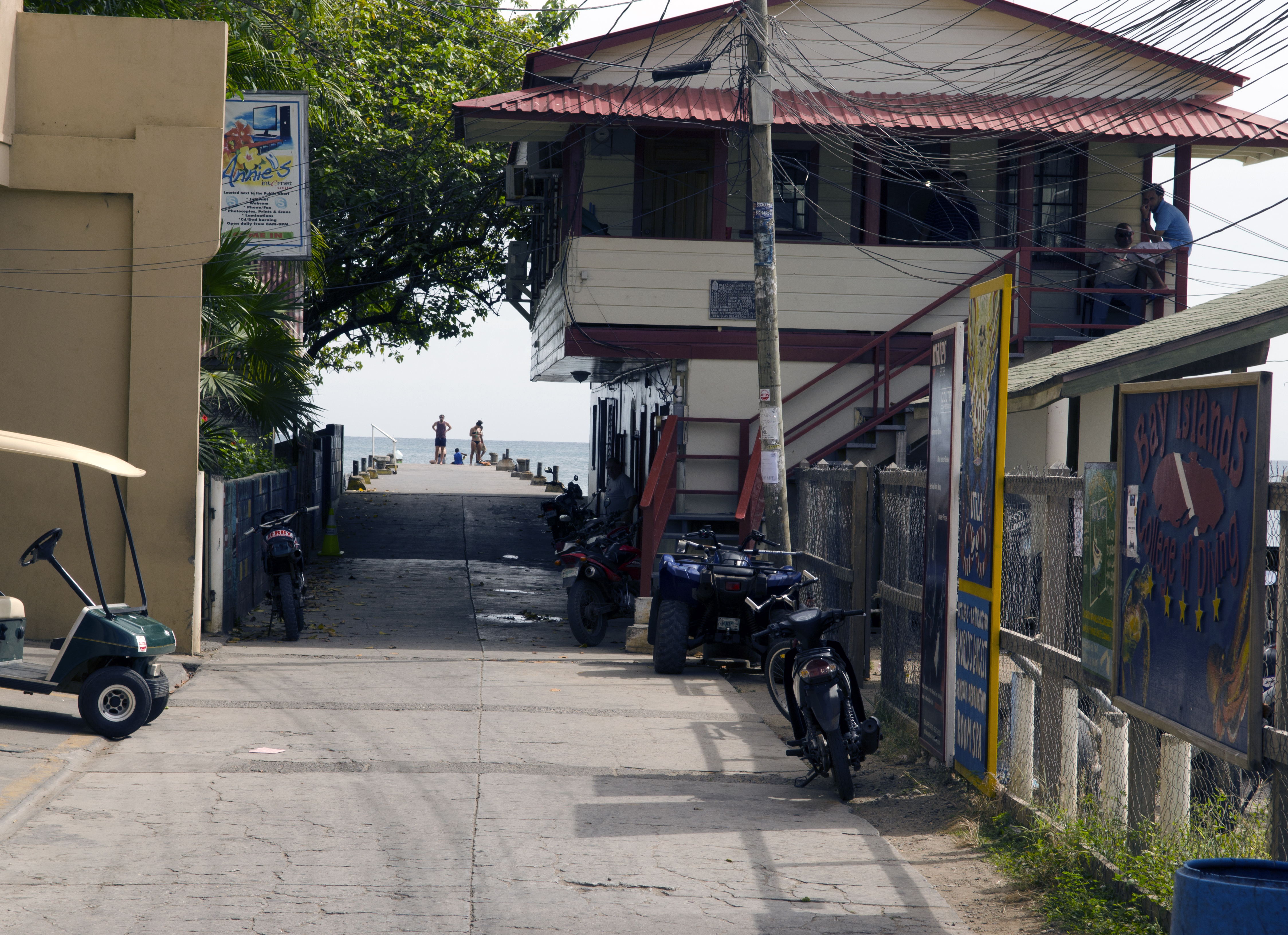 The young travelers leap off the boat, grabbing grimy backpacks and stray flip-flops, storming down the long cement pier under the scorching Central American midday sun. What waits for them is a gauntlet of tour operators and hotel workers who, slipping from the shady spots at the end of the dock in to plain view, hand out pamphlets advertising scuba diving courses and whale shark excursions.